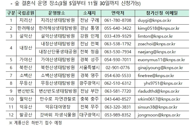 국립공원에서 진행하는 **‘숲 결혼식’과 ‘웨딩 촬영 지원 프로그램’**은