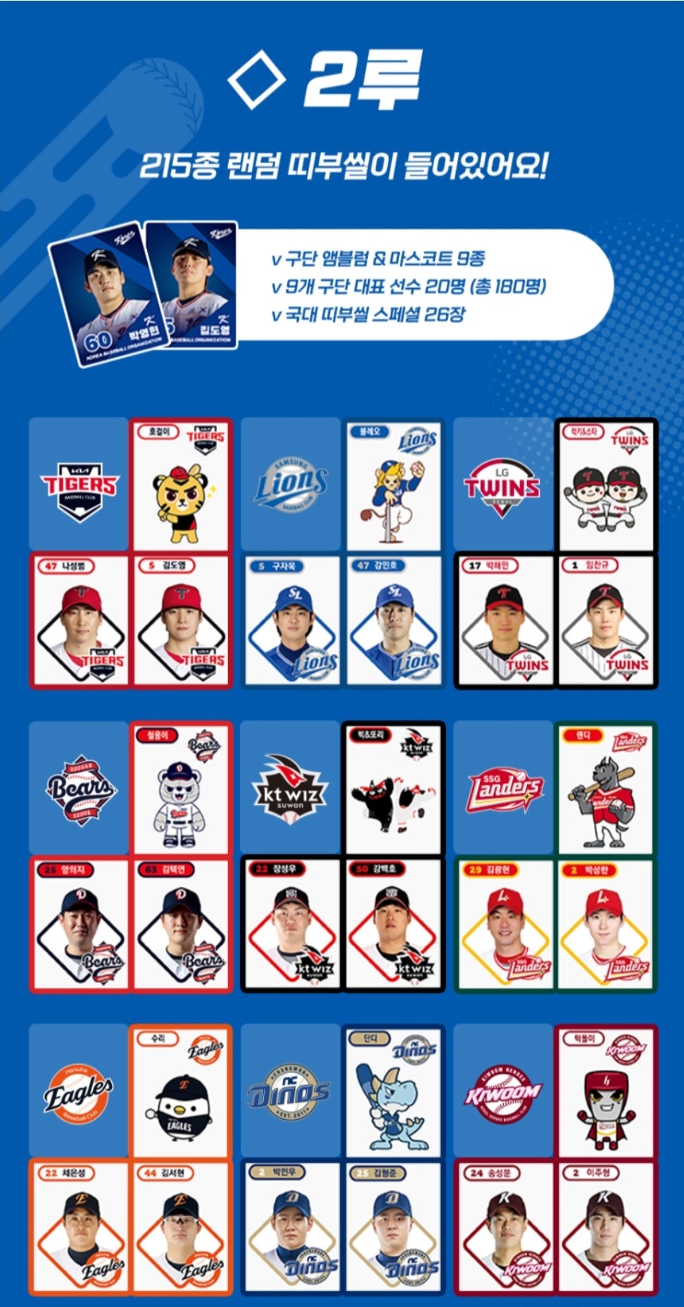 - 팀별 대표 선수: 180종 (각 구단당 20명)